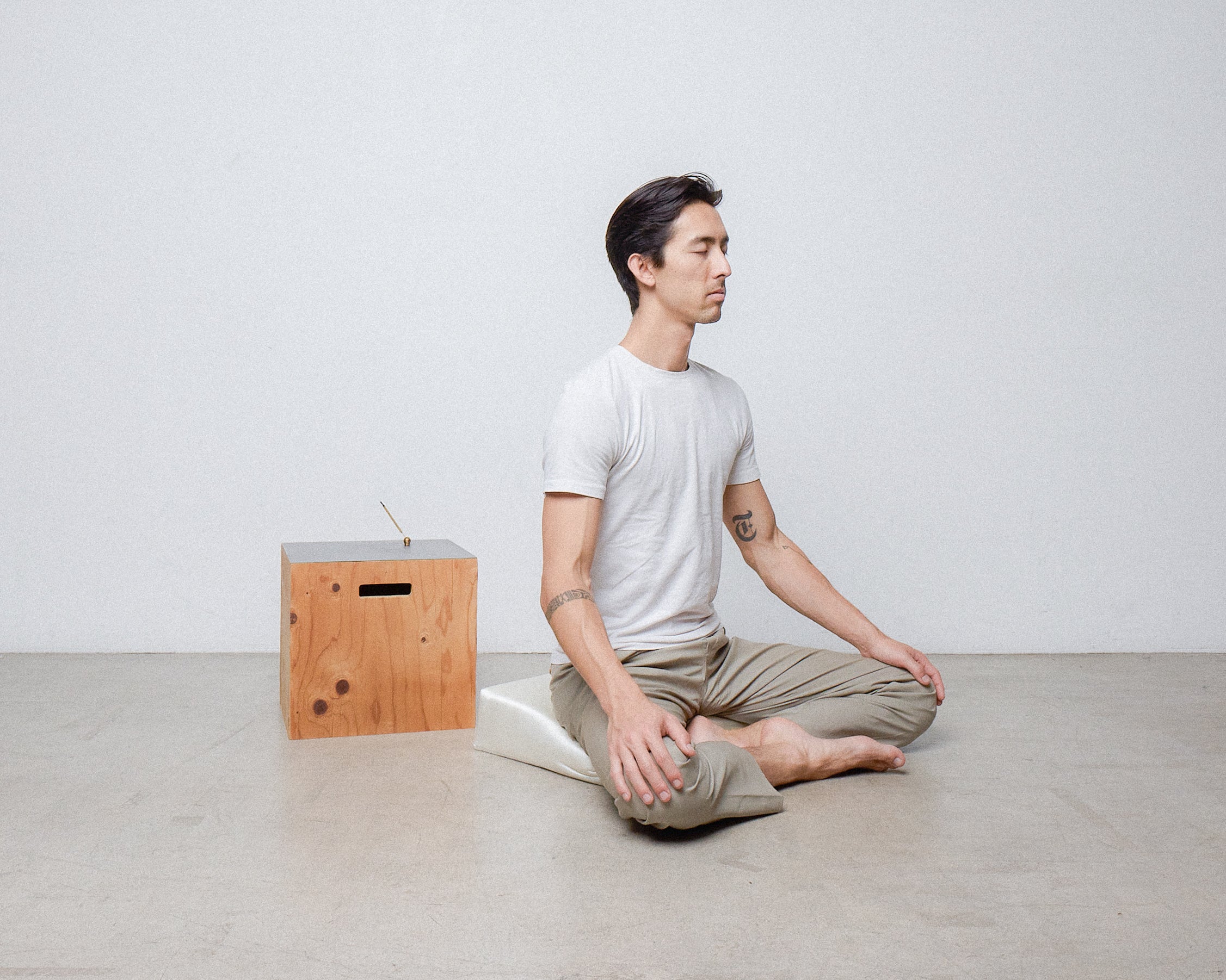 Sit like a sage—close to the earth—or pair it with our Box (sold separately) for an elevated view of the world. Here lies a design that's slick and sticks. Hidden magnets are concealed on the underside of the cushion to prevent it from slipping when used with the Box. Some call it magic.